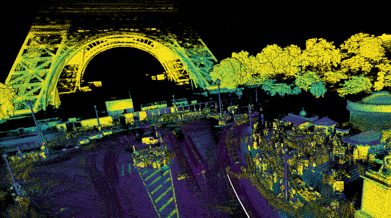 The Falcon’s extensive range is another standout feature, enabling it to capture high structures while minimizing drift, which is a significant advantage over sensors with shorter ranges. During a recent data acquisition project in Paris, Falcon was able to measure points up to 500m on highly elevated structures such as buildings, bridges and even on the full first floor of the iconic Eiffel Tower. “In addition to adding very interesting features to 3D maps, these long-range measurements help reduce the drift of the SLAM by providing better observability of the scene”, added Corsia.