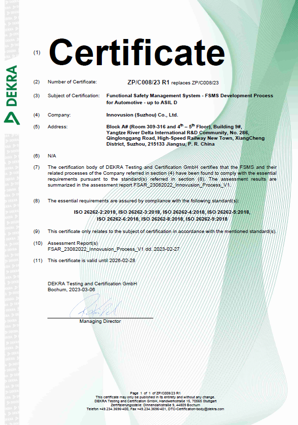 Seyond has passed ISO 26262 certification for automotive functional safety by DEKRA Certification, Inc. This certification signifies that Seyond has established a complete development process and management system for automotive-grade products in accordance with ISO 26262:2018 standard, empowering high-quality development of the autonomous driving industry.